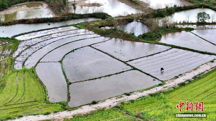图为水稻种(zhong)植户开始育秧、犁田,为早稻种(zhong)植做准备。(无人机(ji)照片(pian))汤晓逵 摄