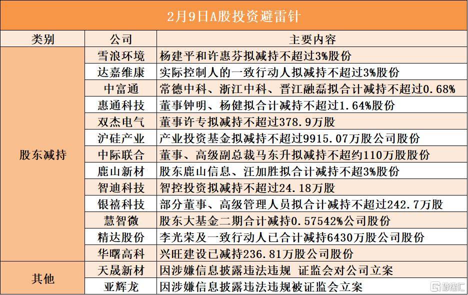 雪浪(lang)情况股(gu)东杨建平和(he)许惠芬拟减持没有(you)超过3%股(gu)份;达嘉维康现(xian)实操(cao)纵人的一(yi)致举措人拟减持没有(you)超过3%股(gu)份;中富通(tong)股(gu)东常(chang)德中科、浙江中科、晋江融磊拟合计(ji)减持没有(you)超过0.68%;惠通(tong)科技股(gu)东董事钟明、杨健拟合计(ji)减持没有(you)超过1.64%股(gu)份;双杰电气董事许专(zhuan)拟减持没有(you)超过378.9万股(gu);沪硅家当股(gu)东家当投资基金拟减持没有(you)超过9915.07万股(gu)公司股(gu)份;中际联合董事、高等副总裁马(ma)东升拟减持没有(you)超约(yue)110万股(gu)股(gu)份;鹿山新材股(gu)东鹿山信息、汪加胜拟合计(ji)减持没有(you)超3%股(gu)份;精达股(gu)份股(gu)东李光荣及一(yi)致举措人已合计(ji)减持6430万股(gu)公司股(gu)份;华(hua)曙高科股(gu)东兴旺建设已减持236.81万股(gu)公司股(gu)份;天晟新材因涉嫌信息表露守法违规 证监会对公司备案;亚辉龙因涉嫌信息表露守法违规被(bei)证监会备案