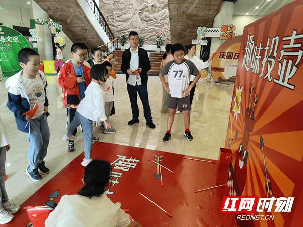 ▲国庆中(zhong)秋长假(jia),旅客正在岳阳市博物馆内(nei)体验蹴鞠挑战赛、意(yi)见意(yi)义投壶、古法月(yue)饼(bing)制作等(deng)互动体验流动。