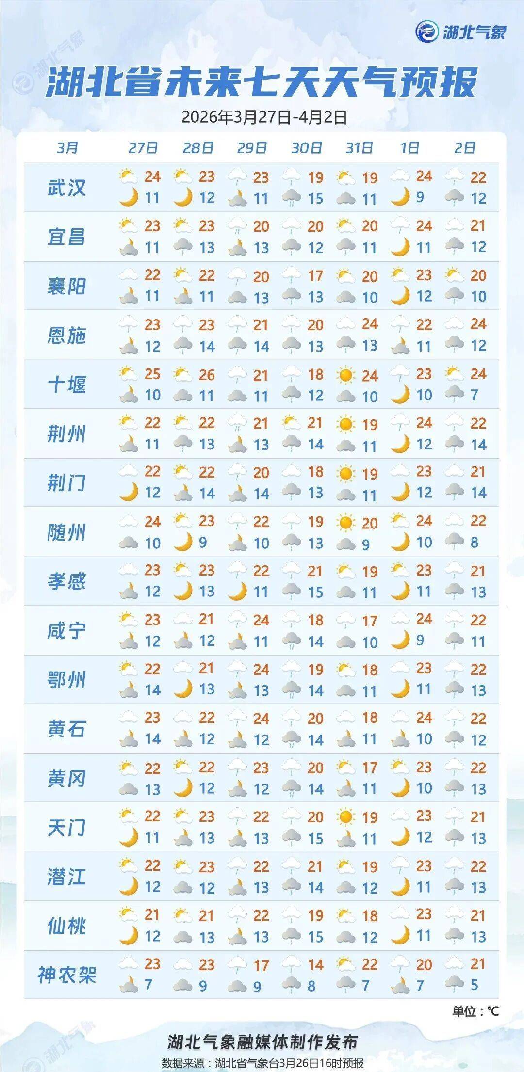 鄂东北、鄂西南(nan)局地(di)有零星小雨