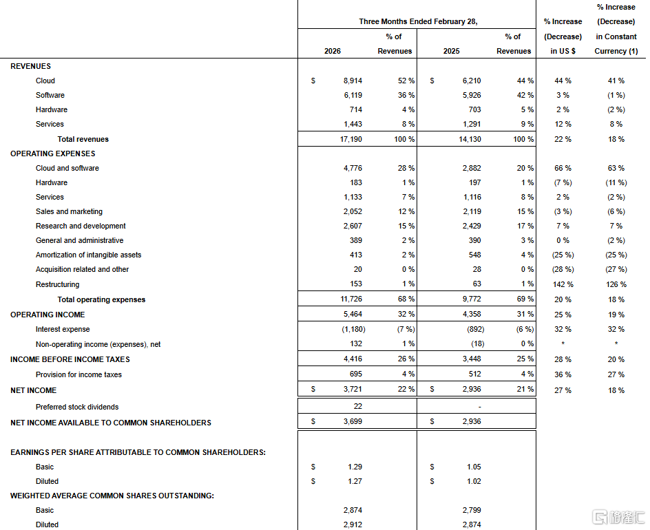 财报表现,甲骨文第三财季营收约172亿美圆,较分析(xi)师预期168.9亿美圆高(gao)近(jin)1.8%,同比增进22%,增速远超第二财季的14%。