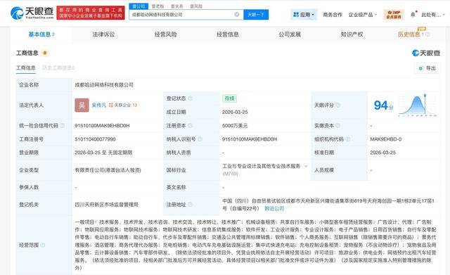 天眼查工商信(xin)息显示,近(jin)日,成(cheng)都哈动网络科技有(you)限公司成(cheng)立(li),法定代表人为吴传凡,注册资本5000万美元,经营范围包括(kuo)机械设备租赁、共享自行(xing)车服务、小微型客车租赁经营服务、物联网应用服务、物联网技术服务、物联网技术研发、信(xin)息系统集成(cheng)服务等。股东信(xin)息显示,该公司由哈啰出行(xing)旗下(xia)Hong Kong RideTech Limited全(quan)资持股。