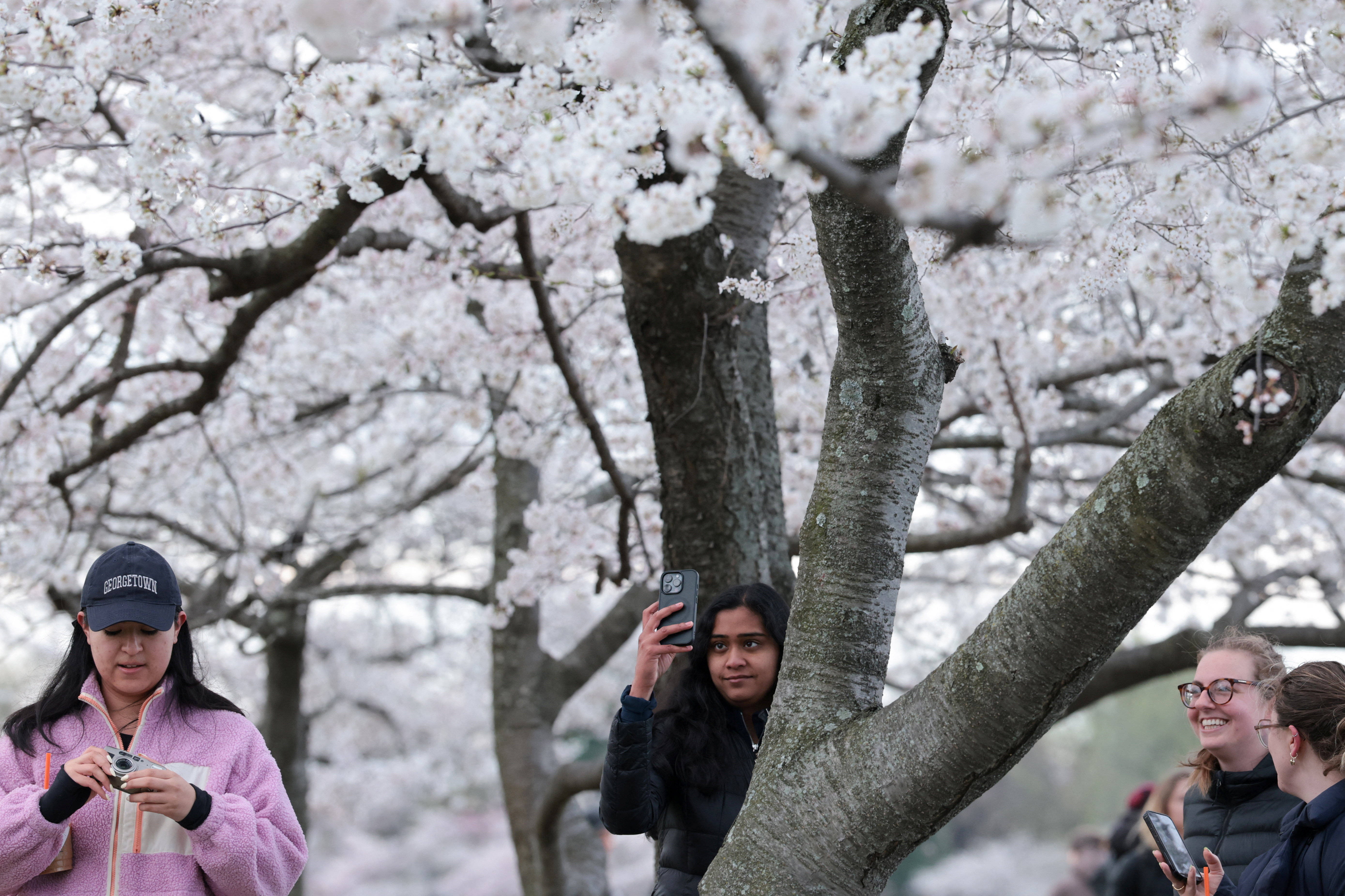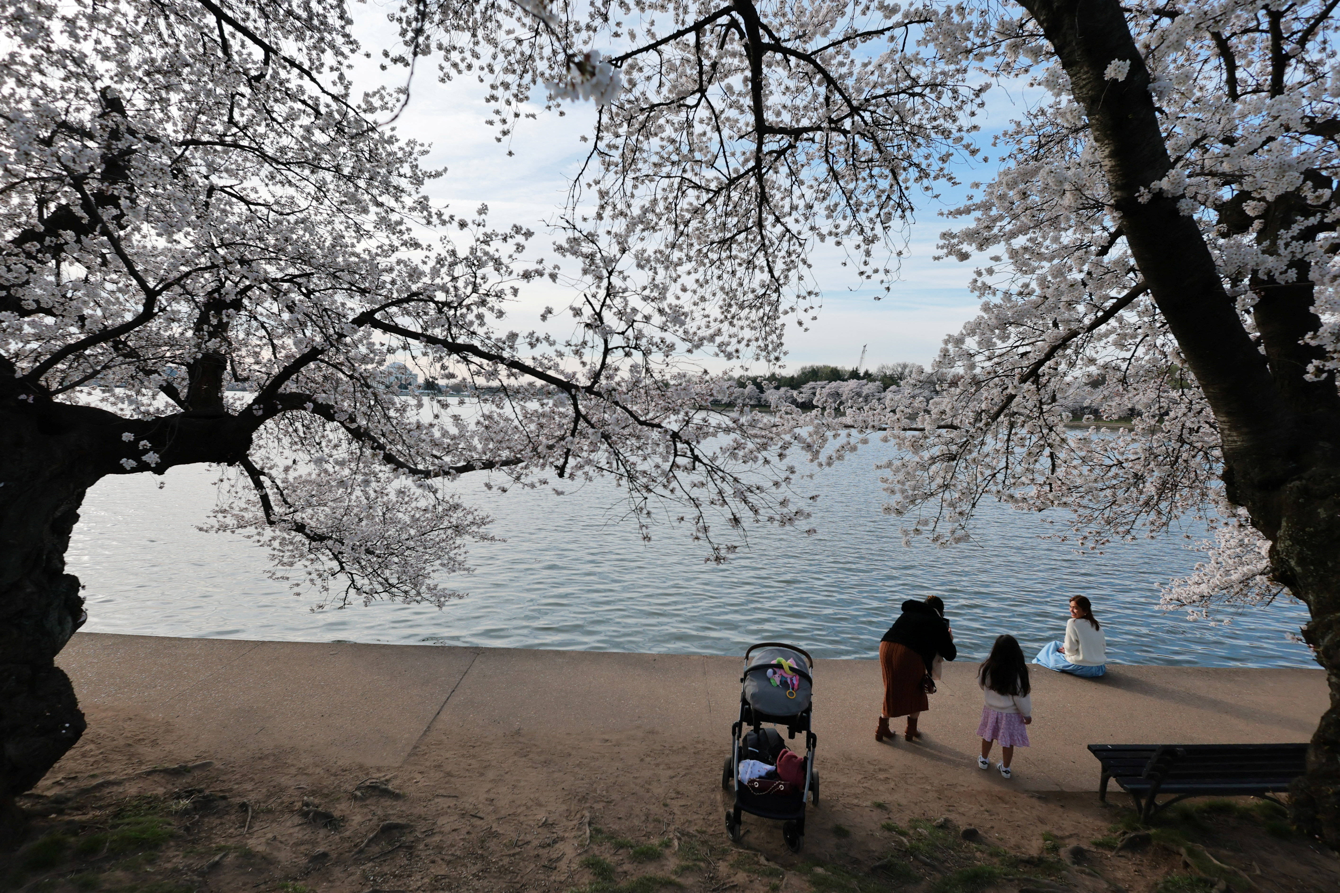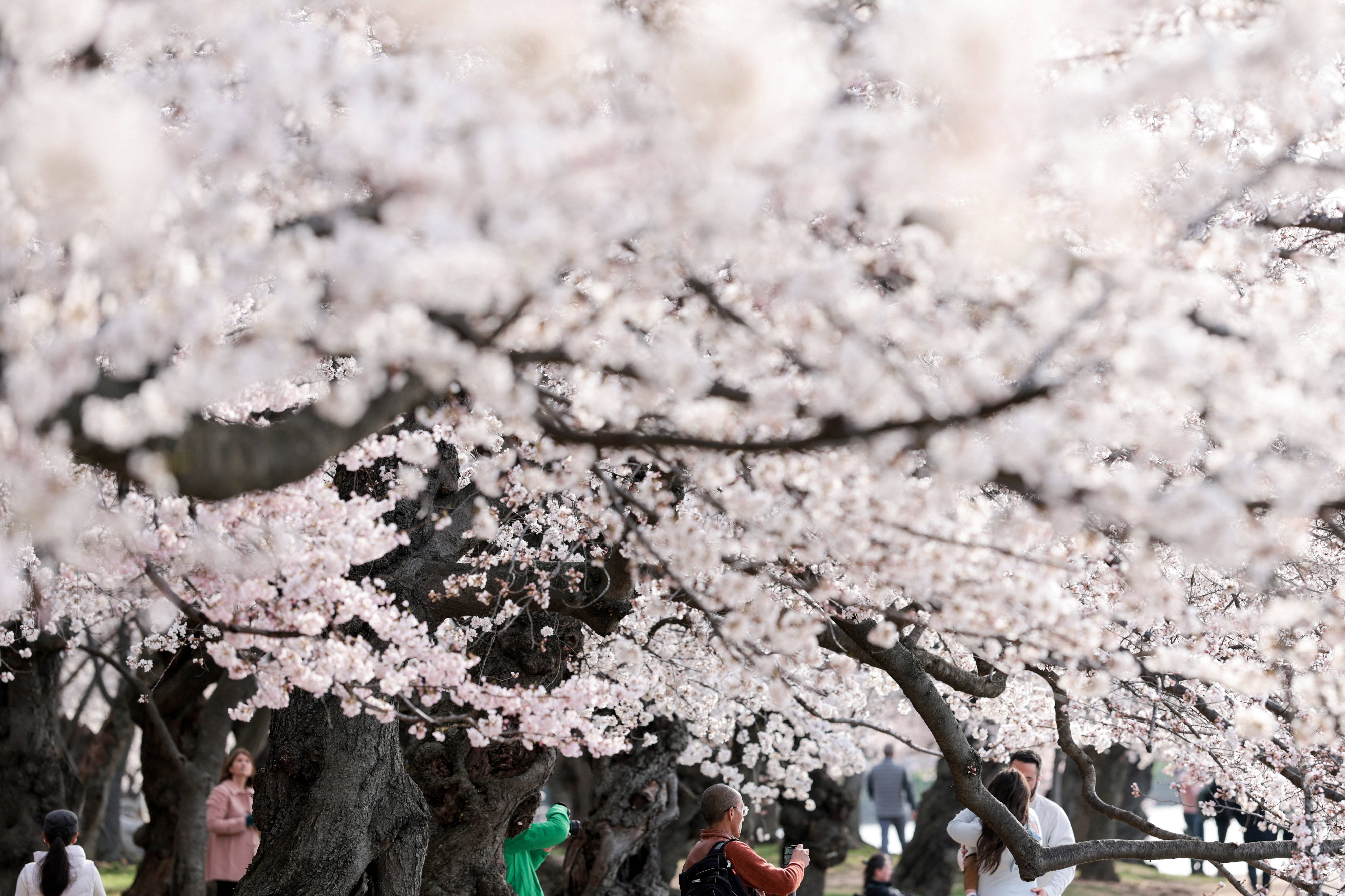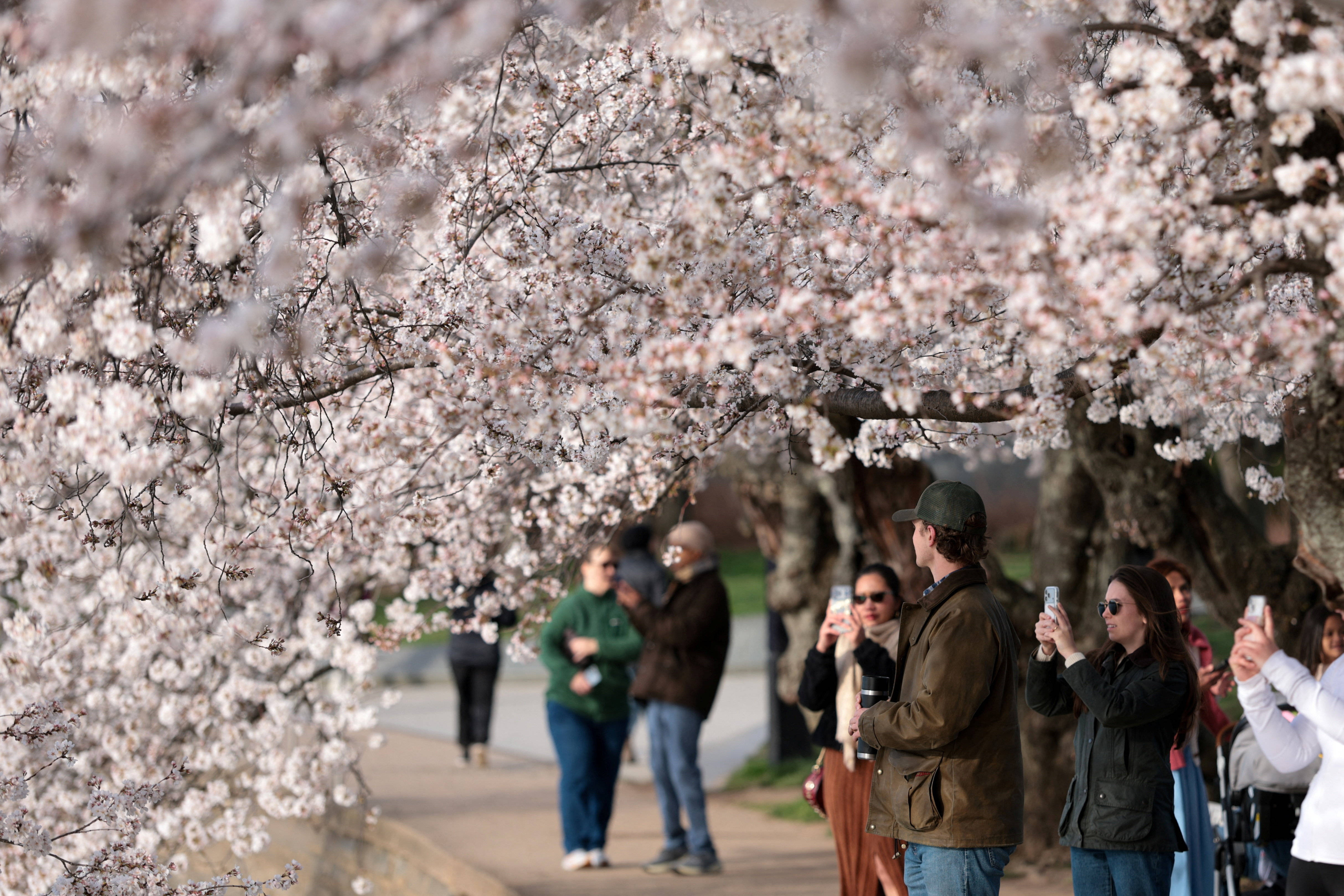 3月25日(ri),人们在美国华(hua)盛顿潮汐(xi)湖畔赏樱。 新华(hua)社/路透