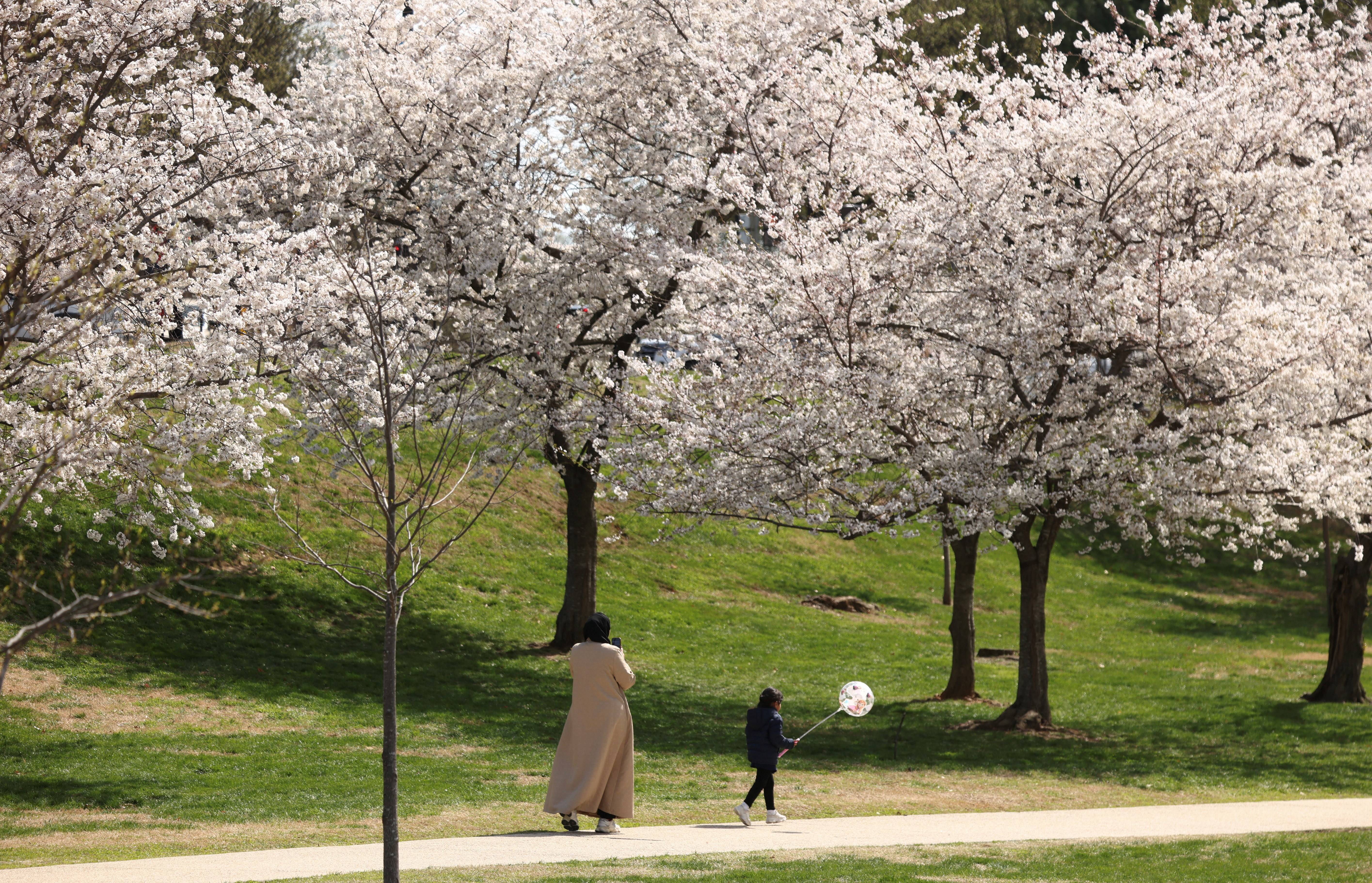 3月25日(ri),人们走在美国华(hua)盛顿国家广(guang)场的樱花树下。 新华(hua)社/路透