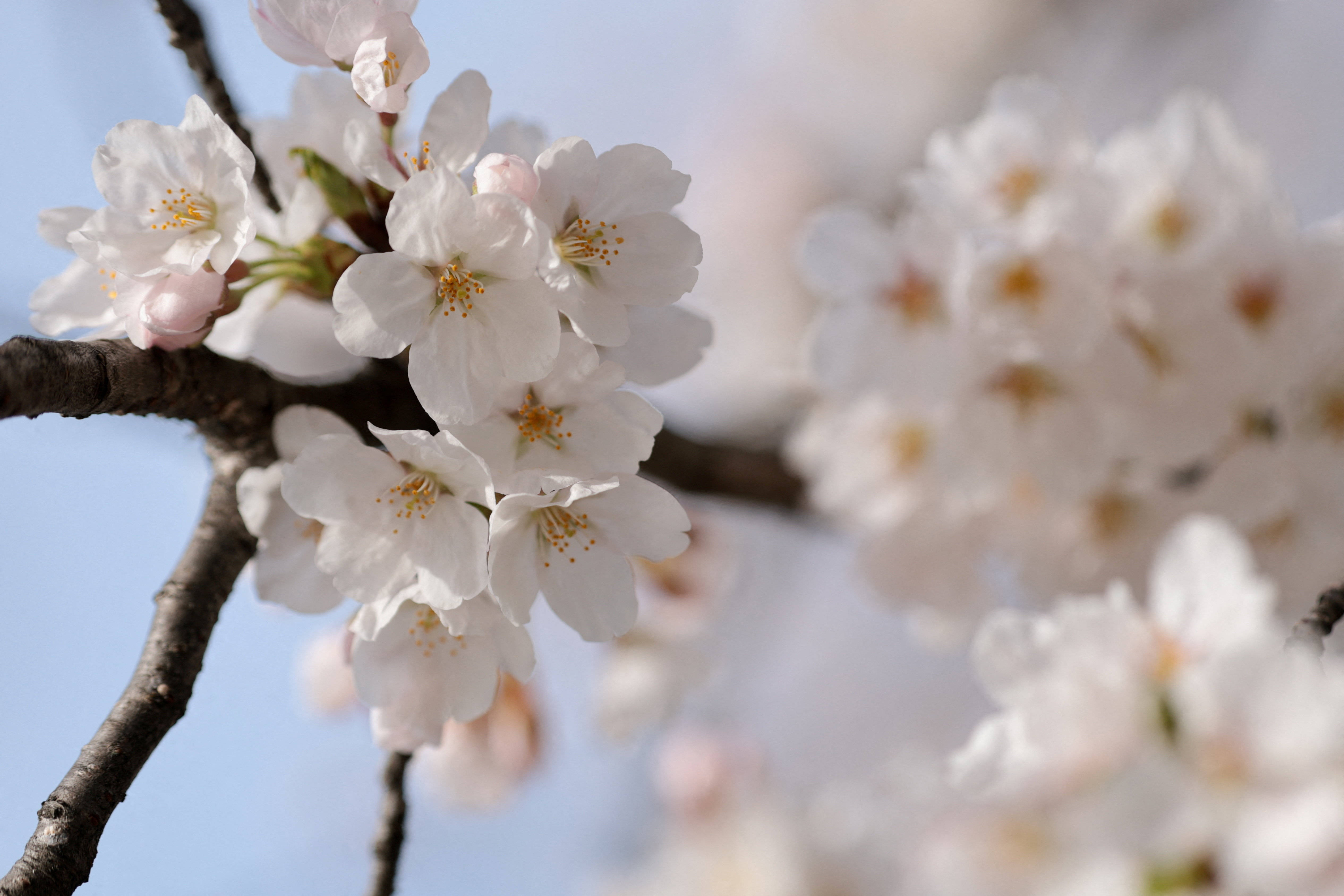 这是(shi)3月25日(ri)在美国华(hua)盛顿潮汐(xi)湖畔拍(pai)摄的樱花。 新华(hua)社/路透