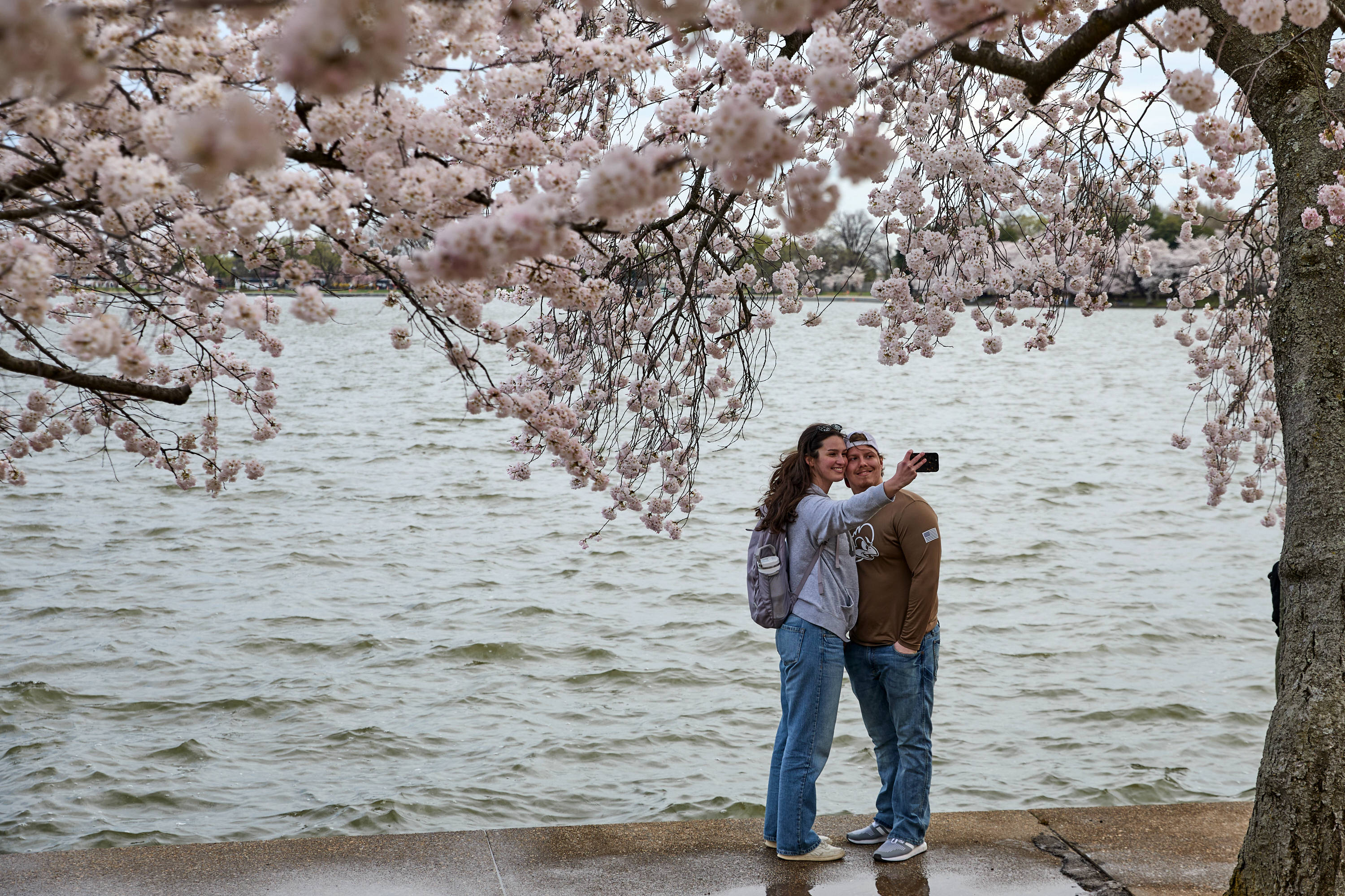 3月25日(ri),人们在美国华(hua)盛顿潮汐(xi)湖畔赏樱。 新华(hua)社/美联