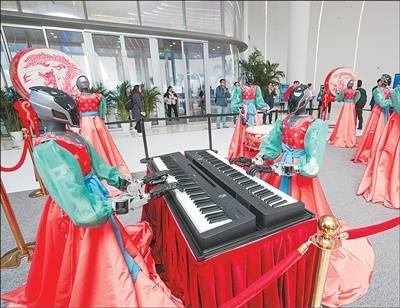 2026中关(guan)村论坛年会上,机器人乐队(dui)举行(xing)乐器演奏。 本报记(ji)者 张武军摄