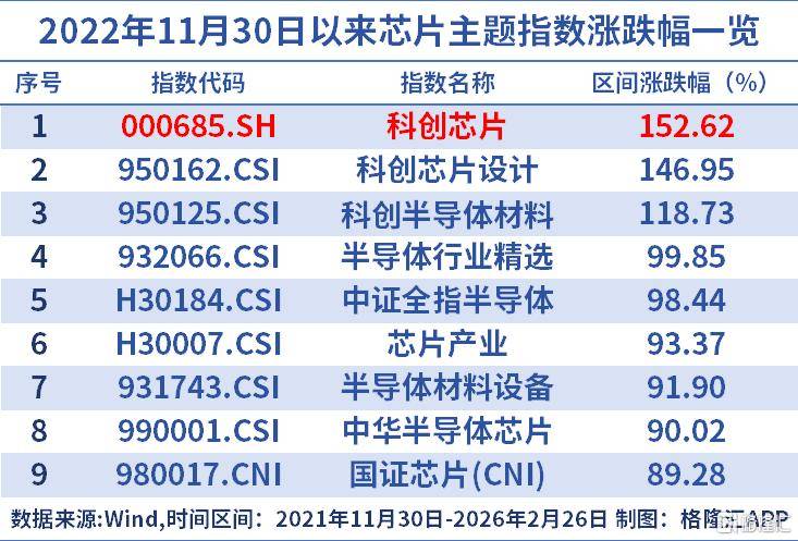 2022年11月30日(ri),ChatGPT横空出世,在随后在三年间点燃了一场囊括环球的人工智能反动,半导(dao)体(ti)板块随即上(shang)演(yan)主升浪(lang)行情,科创(chuang)芯片ETF(588200)标的指(zhi)数(shu)科创(chuang)芯片期间累计(ji)下跌152%,领涨(zhang)同类指(zhi)数(shu)。