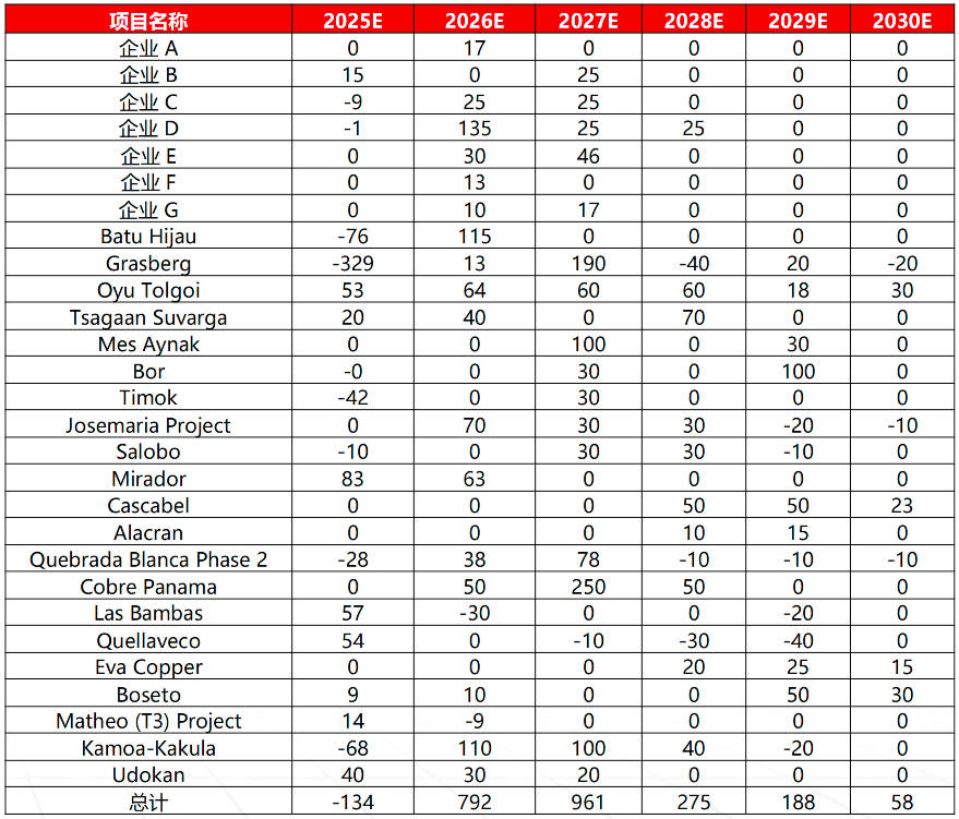 25-2030年全(quan)球首(shou)要铜矿产量(liang)变更(千(qian)吨(dun)) 材料来(lai)源:SMM