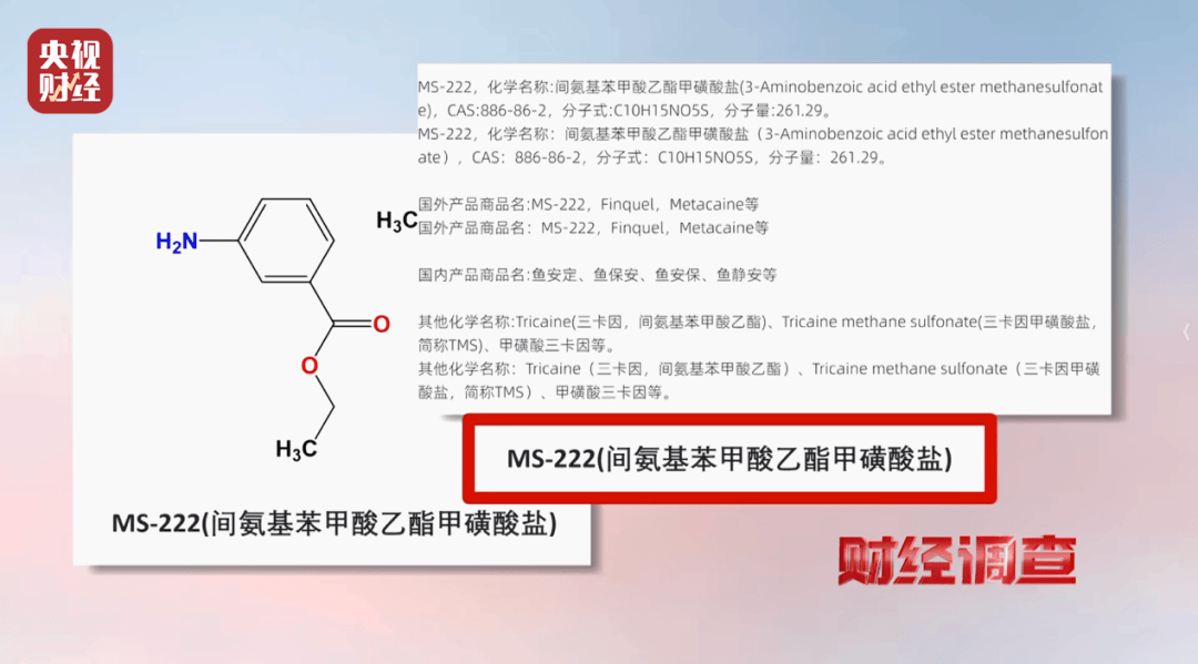 商户向记者展示的MS-222,俗(su)称甲盐,化学名间(jian)氨基苯甲酸乙酯甲磺酸盐,为(wei)白色结晶粉末(mo),对(dui)鱼类有麻醉感化。