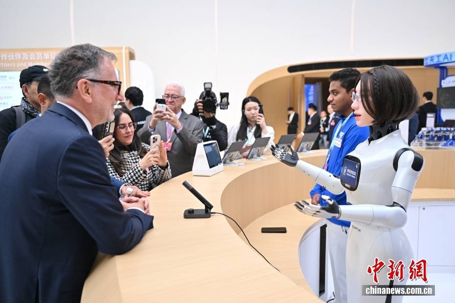 3月25日,2026中关村论坛年会在(zai)北京开幕。本届论坛年会主题为“科技创新与产业创新深度(du)融合”,设置论坛会议、成果发布、技术交易、前(qian)沿大赛、配套活动五大板块,共百余场活动。图为开幕式前(qian),“迎宾”机器人小(xiao)诺(右)为与会外国嘉宾提供咨询服务(wu)。中新社记者 赵文宇 摄
