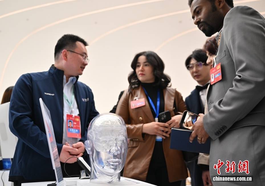 3月25日,2026中关村论坛年会在(zai)北京开幕。本届论坛年会主题为“科技创新与产业创新深度(du)融合”,设置论坛会议、成果发布、技术交易、前(qian)沿大赛、配套活动五大板块,共百余场活动。图为开幕式前(qian),“北脑一(yi)号”智能脑机系统吸(xi)引与会外国嘉宾。中新社记者 赵文宇 摄