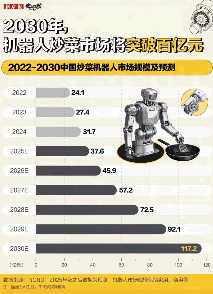 其实炒菜机器人并不是现在才有(you),早在几年前就已经有(you)餐饮企业使用,只是随着(zhe)机器人行业的发展,炒菜机器人变得更受(shou)关注(zhu)了,也让一(yi)个即将突破百亿的炒菜机器人市场(chang)浮出(chu)水(shui)面。