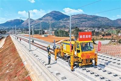 图为渝昆高铁云南段开始铺轨施(shi)工。 杨紫轩摄